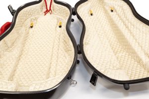 300年以上の時を超えて受け継がれる楽器を守る外骨格として設計し、レーシングマシンと同様に、強度・重量・形状のすべてを最適化。軽量かつ高剛性のモノコック構造を実現しています。内装にはイタリアで原田氏が調達したシルク素材が使われ、楽器のニス塗装を傷めない配慮をするとともに、チェロケースとしては珍しい、弓を4本収納できる仕様となっています。