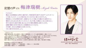 本公演では新たに、「Locatone™(ロケトーン)」から流れる記憶の声として、俳優の梅津瑞樹さん、声優の寺崎裕香さんの出演が決定しています。