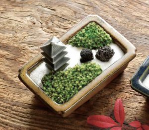 そんな枯山水を、自宅で手軽に楽しめるようにした「禅庭」は、苔や白砂を組み合わせ、手のひらサイズの庭園を自由にデザインしながら、日常に和の癒しを取り入れることができます。