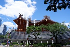 江戸鎮座200年記念事業として、約三年をかけて社殿と参集殿の建て替えが行われ、2016年(平成28年)4月に新しい社殿となり、神社建築様式の社殿と現代建築を取り入れた参集殿は、高度な意匠によって融和し、時代に即した神社へと一新され。そして境内地一面には、最新技術の免震構造を取り入れ、待合室の環境改善も行われました。