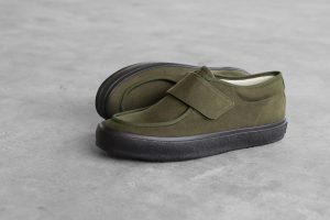 着脱しやすいバンドタイプは、ややミッドカット寄りの絶妙な丈感とパイピングのモカシン仕様が印象的な一足で、25FWシーズンでは季節感のある起毛素材を使用した、KHAKIとBLUEGRAYが新色として登場します。