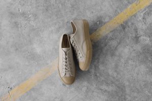 1970年代に生産していた運動靴をルーツとしたモデルは、ベーシックなパターンに、運動靴に必要な強度を持たせるための鳩目補強やあて布とサイドステッチといった当時のディテールを再現した一足で、25FWシーズンではBEIGEが新色として登場します。