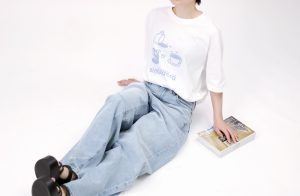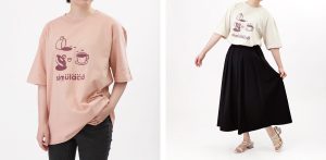 Tシャツのカラーは、ライトベージュ、ホワイト、ダスティピンク、ブラックの4種が展開され、ゆったりとしたビッグシルエットで、そのままはもちろん、ボトムスにインするなど様々な着こなしが楽しめます。