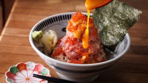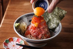 向井の海鮮丼は、鮮度は当然のこと「丁寧な手仕込みで完成させる、仕込み勝負の海鮮丼」をコンセプトに、築地の信頼する仲買から仕入れる天然まぐろをはじめ、すべての食材に丁寧な下処理を施すことで、素材本来の旨みを最大限に引き出しています。