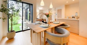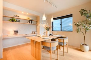 「CLASホームステージング」が導入された、細田工務店の新築分譲住宅「グローイングスクエア花小金井」41号棟では、日本を代表する木工家具メーカー「カリモク家具」が立ち上げたライフスタイルブランド「Karimoku Case(カリモクケース)」の家具が全面的に採用され、上質な住空間が演出されています。