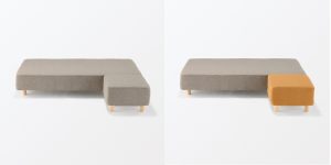マットレスと同じ構造のスツールも用意されているので、組み合わせてカウチソファやオットマンのように使うこともでき、同色で組み合わせるだけでなく、部屋のアクセントにもできるようにカラーバリエーションをもたせました。
