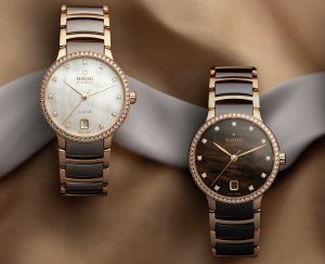 ケース、リュウズ、針、ブレスレットにはローズゴールドを採用し、モダンな印象を際立たせるカラーリングが特徴で、ブレスレットはダイヤルとの調和も意識したデザインで、ブラウンダイヤルにはポリッシュ仕上げのハイテクセラミック製ミドルリンクを、ライトシルバーダイヤルにはラドーが誇るプラズマハイテクセラミック製ミドルリンクを採用しています。
