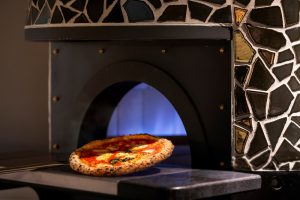 FUDOのシンボルな石窯は、400℃を超える高温での調理が可能で、素材本来の旨みを余すことなく引き出した料理が提供されます。