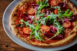 高温の石窯で焼き上げ、旬の野菜をたっぷりとのせて、野菜のうまみや甘みをしっかりと味わっていただけるピザは、もちもちで少し厚めのナポリ風生地を、シェフが一枚一枚丁寧に練り、小麦の香ばしさをしっかりと感じられるFUDOの看板メニューです。