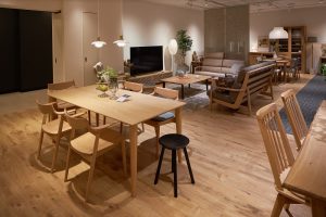 移転を機に、店内は単なる展示スペースの刷新にとどまらず、「家具を通して暮らしを提案する場」としてその役割が拡大され、実際の居住空間を模したレイアウトを導入し、来場者が木の質感や座り心地を体感しながら、自身の暮らしに重ね合わせて商品を選べる環境を整えています。