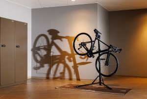 バゲージコーナーにはメンテナンススタンド、エントランス付近には洗車スペースが設けられ、出発前・帰着後の手入れがしやすい環境が提供され、また、愛車を客室に持ち込めるため安心して宿泊できるだけでなく、自慢の愛車を眺めながら今日のルートを振り返り、翌日のルートに想いを馳せるなど、客室でもサイクリング旅の醍醐味が楽しめます。