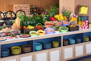朝夕共に食事はビュッフェスタイルで、4月1日から「街角のマルシェ」をテーマとした五感を満たす食体験が提供され、大山の地元食材を使ったメニュー、地域の食文化を感じるメニューも見逃せません。