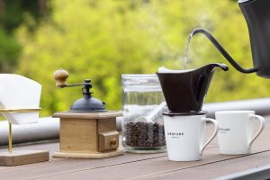12階ラウンジでは時間帯により様々なアルコールやソフトドリンク、地元銘菓で寛ぎのひと時を過ごすことができ、朝は1階で土地ならではの魅力を感じるコンテンツ「Local Discovery」として、奥大山の水洗いコーヒーを豆から挽いてハンドドリップ、薫り高い1杯を楽しむ時間が用意されています。