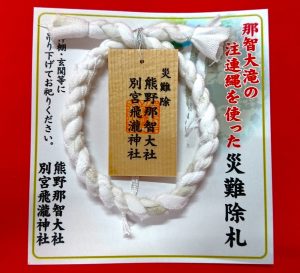 このお守りは実際に掛けられていた注連縄に使用されたさらしで奉製された、特別なお守りで、那智の滝の水勢にあやかり、厄や難が除かれるようお祈りされたものです。