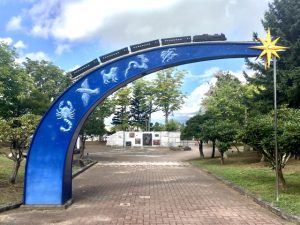 特殊塗料で描かれている「未来都市銀河地球鉄道」の絵は、日中は白い輪郭しか見ることができませんが、夜のライトアップによって浮かび上がる、ロマンチックな人気スポットとなっています。